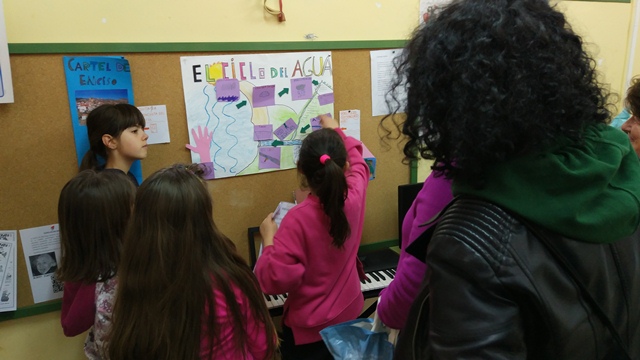 Presentamos a la gente que vino nuestros proyectos: el ciclo del agua, el cartel de Enciso, el planetario, las catedrales, los paisajes, el herbario y nuestros climogramas. Dos alumnos presentaron una clase y los otros dos la otra (Ibón estaba de ayudante). Les dijimos toda la información de los proyectos y contamos las fuentes de todos esos datos.