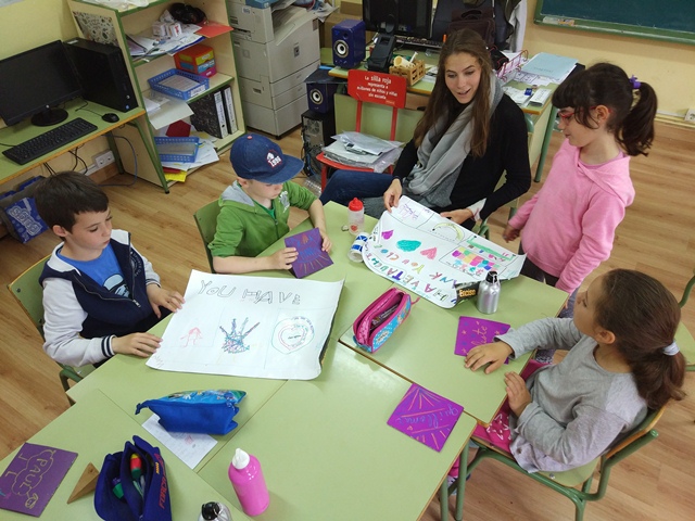Termina el periodo lectivo para Chloe y tiene que volver a Estados Unidos para ver a su familia y amigos. Hemos convivido con ella durante los viernes de este curso y hemos aprendido mucho Inglés. Es una profesora muy buena y hemos aprendido muchas cosas, como a hablar y escribir en Inglés, manualidades típicas de EEUU, muchos juegos...