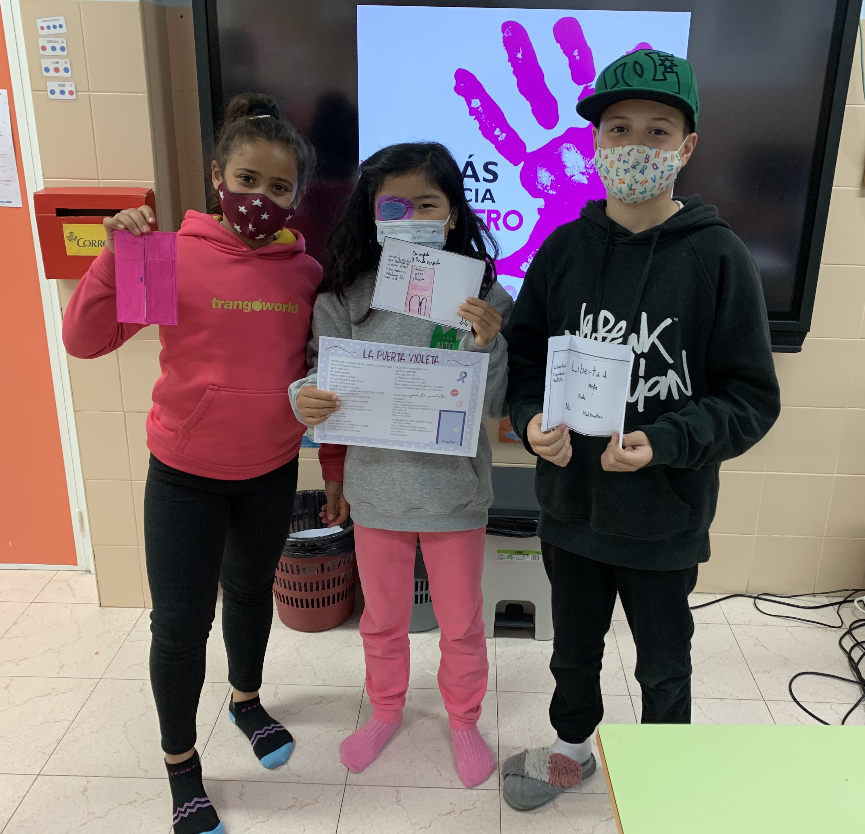 Ayer se celebró el Día Internacional Contra la Violencia de Género, y en la clase de Valores nos hemos querido sumar al acto. Para ello, hemos trabajado la canción "Puerta violeta" de la artista Rozalén. Tras reflexionar y comprender el trasfondo de la canción, hemos creado pequeñas puertas violetas con mensajes como: "Libertad, igualdad, respeto" o "Contra el maltrato, tolerancia cero".