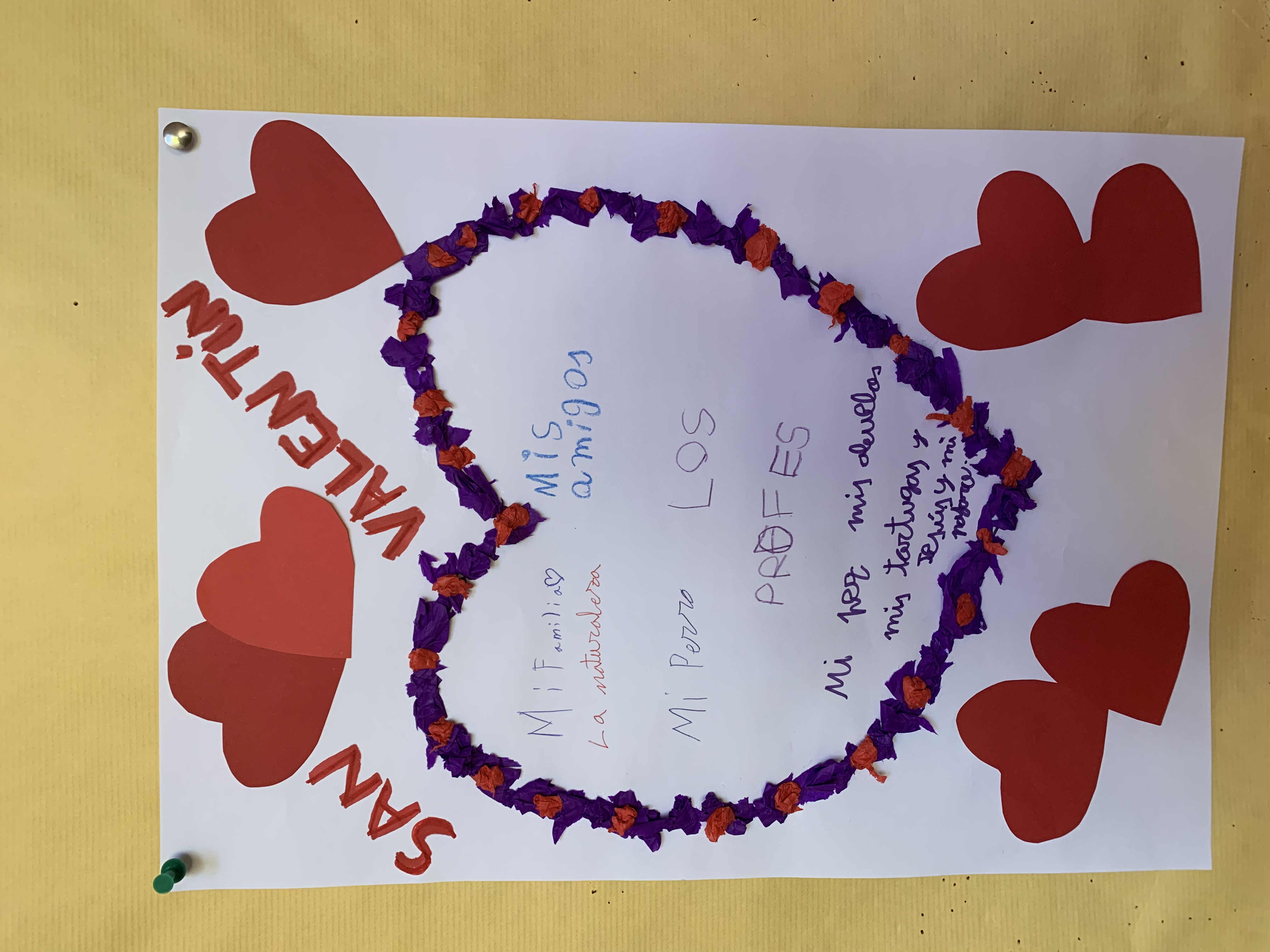 ¡No nos olvidamos que también se celebraba San Valentín! Por lo que, en Religión realizaron un corazón con mucho amor. Por otro lado, en Valores el grupo de medianos crearon un corazón dibujando o escribiendo personas importantes para ellos, lo que más les gusta de su personalidad, sentimientos... El grupo de mayores, con el método de trabajo "carta" escribieron una carta de amor, cariño o agradecimiento a un amigo o familiar y llevaron a cabo la propuesta: El mapa de mi corazón. También, decidieron compartir un cartel con buenas acciones para estos días. Aquí podéis ver el resultado: