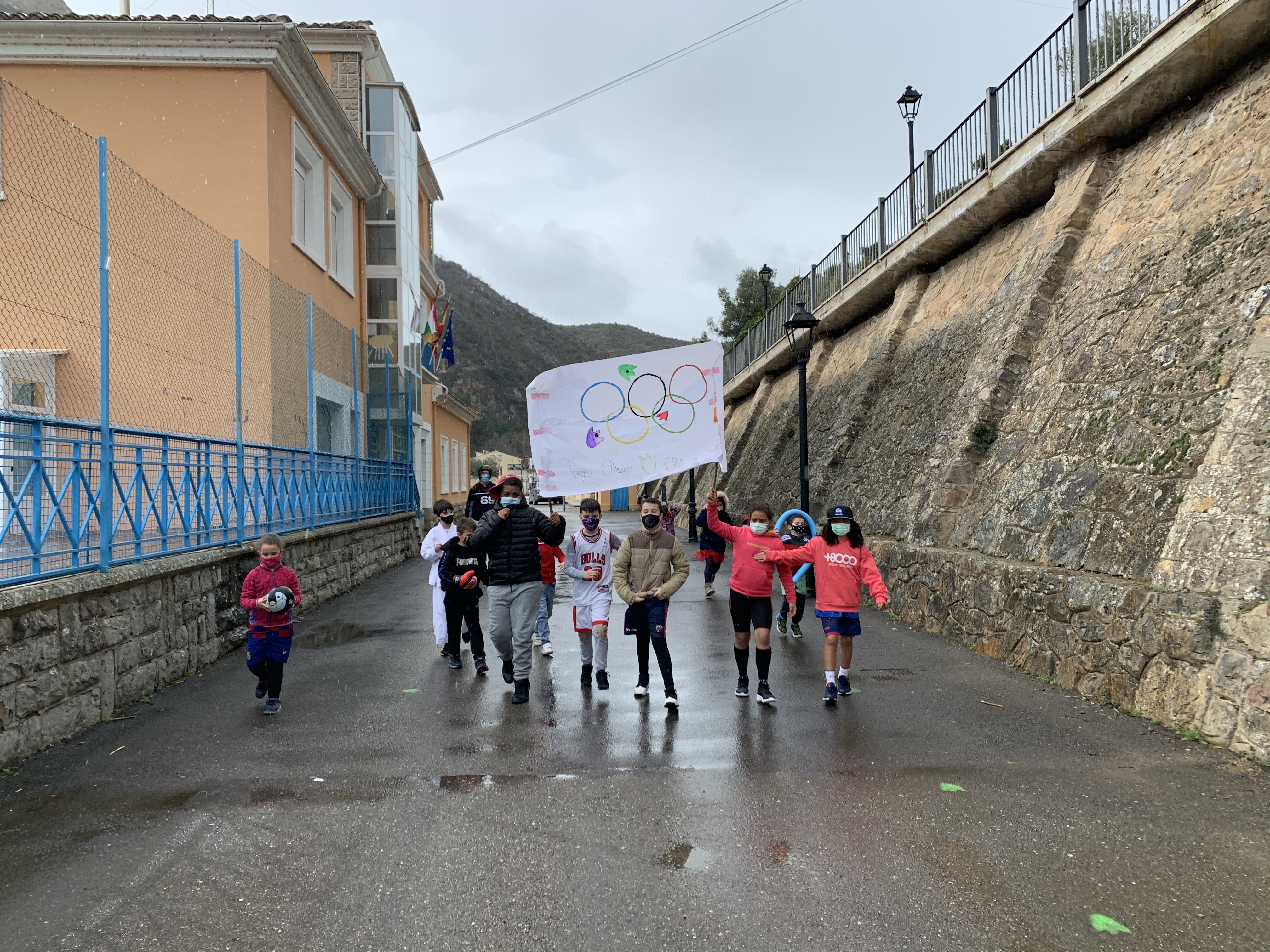 El viernes celebramos oficialmente el Carnaval. Pancarta en mano, realizamos un pequeño desfile desde el colegio hasta el frontón. Inauguramos los Juegos Olímpicos de Arnedillo con un baile de apertura de la mano del grupo de mayores. Con todas las medidas de seguridad posibles y en grupos burbuja, llevamos a cabo una emocionante yincana donde el movimiento, la coordinación, el deporte y la diversión estaban asegurados. En las siguientes fotos podéis ver lo bien que nos lo pasamos y todo lo que disfrutamos: