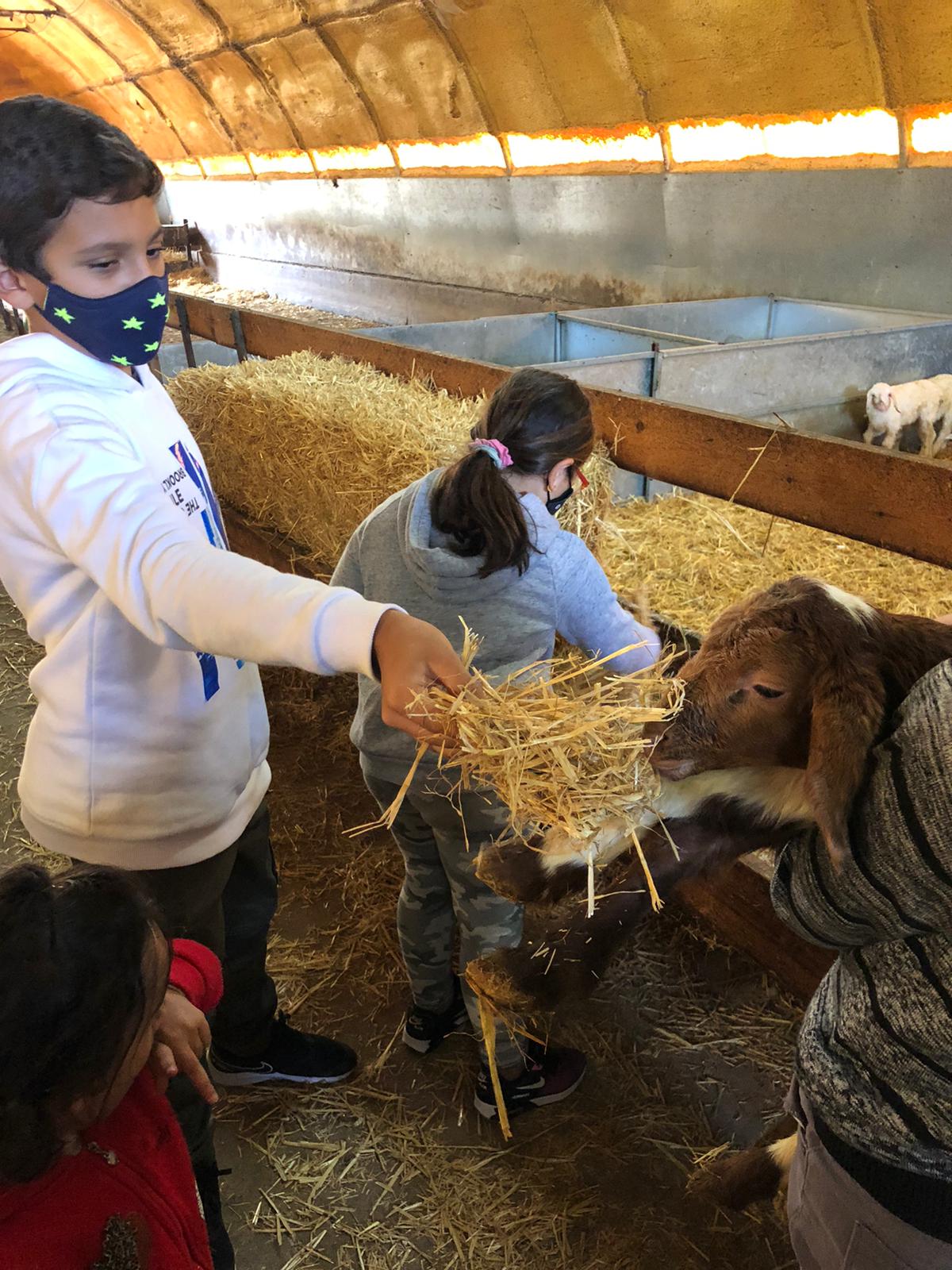 oveja bebé mientras mis amigos y yo le dimos de comer.
