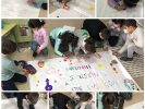 Podéis pasaros a verlo. Os dejamos por aquí unas fotos de los juegos, la creación del mural y cómo lo hemos colocado.